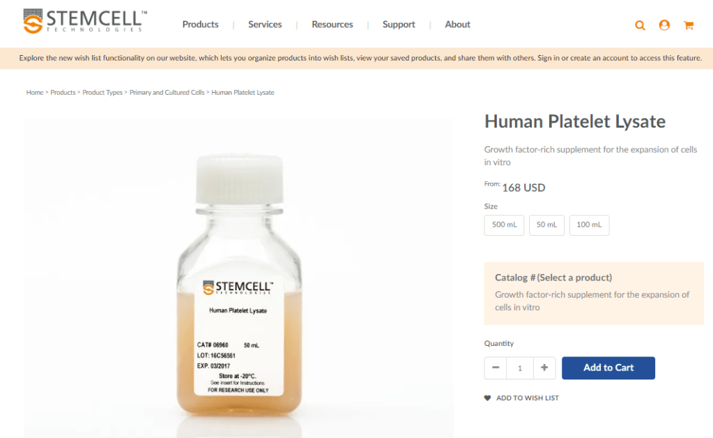 BTW, if you want to buy some human platelet extract (lysate is the scientific term for extract), here’s the source: