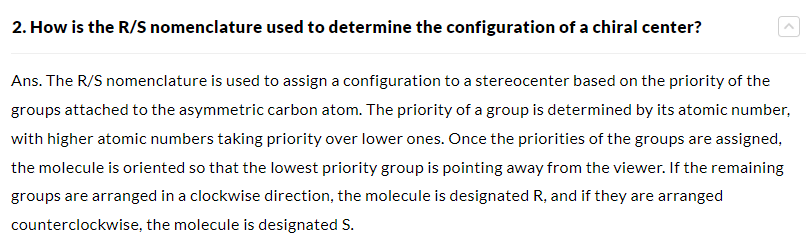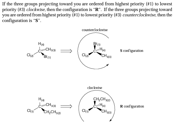 We now use a different system that is absolute in determining the chirality of molecules, and it uses R and S. Here’s a summary: