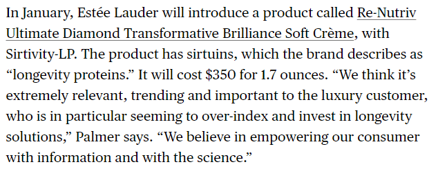 Longevity is a hot topic in the popular press, and the topic has now hit skincare. This is part of the “scientification” of skincare in the popular press that has arisen over the last few years. The trend has an upside and a downside. Learning about ingredients and how they work in the skin is important. The better informed we are, the better we can take care of our skin. The downside, is that non-scientists, including many practicing dermatologist, who have neither been trained as scientists, nor trained to analyze scientific studies, often proffer erroneous information about skin care in the popular press. For example, in my 2020 publication, in the section called “Example of Misinformation in Skin Care Marketing.” I describe how a practicing dermatologist in Miami makes many mistakes in describing skin care ingredients in her various popular press articles, including articles in a large newspaper.